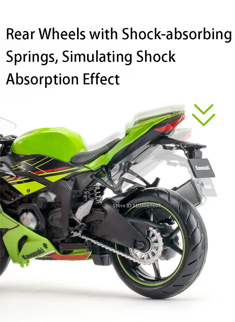 Para fãs de duas rodas, esta Ninja ZX?6R em escala 1:12 é o tipo de peça que transforma qualquer estante, mesa ou nicho em pista de corrida. A carenagem esportiva, as linhas agressivas e o acabamento realista fazem dela um destaque instantâneo na coleção — sem falar no peso e na presença que só modelos em metal podem entregar.