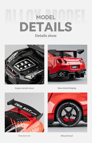 Transforme qualquer mesa, prateleira ou vitrine em pista de arrancada. Esta miniatura do lendário Nissan GT-R chega em escala 1:24 com acabamento em vermelho e preto, visual agressivo e detalhes que chamam atenção de longe.