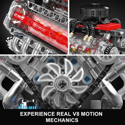 Explore a engenharia por trás dos motores de alto desempenho com este conjunto de blocos de montar da marca Mould King. Com 487 peças, o kit permite construir uma réplica funcional do motor V8 LSX454, com movimento real dos pistões, cabeçote transparente e sistema motorizado.