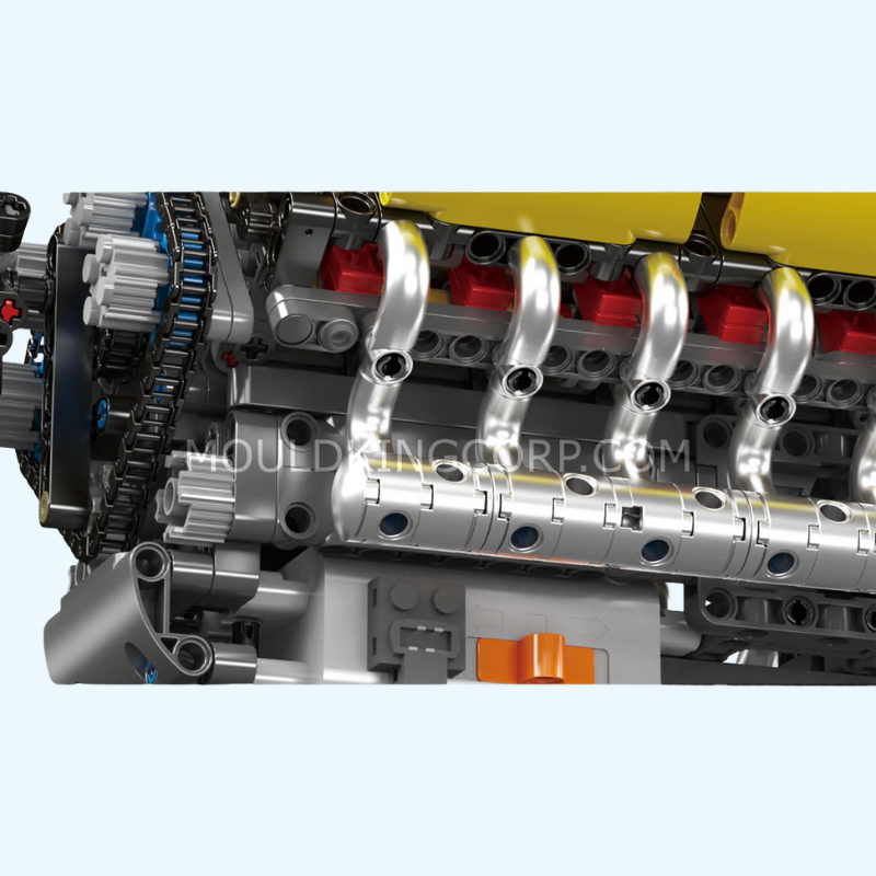 O Motor V12 Mould King 10202 é um kit para quem gosta de engenharia “raiz”: aqui você monta um V12 completo, inspirado nos motores de supercarros italianos Lamborghini e Ferrari, com pistões em movimento, comando de válvulas, virabrequim e câmbio acoplado. São 1.260 peças para construir um motor funcional em blocos, com direito a motor elétrico e caixa de marchas manual de 4 velocidades.