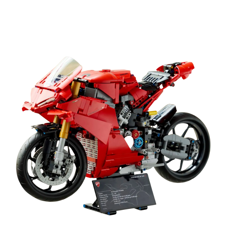 Este kit da Ducati Panigale V4S é para quem não busca apenas montar — mas colecionar estilo, impacto visual e acabamento elevado. Com aproximadamente 646 peças, cada etapa da montagem revela traços de engenharia, design esportivo e presença imediata. O resultado final não é apenas um modelo — é uma peça de destaque na sua coleção, com proporções bem definidas, visual premium e a certeza de que quem vê, admira.