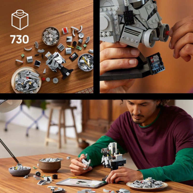 O capacete AT-AT Driver Gray em blocos de montar é um display perfeito para quem é fã de Star Wars e gosta de coleção com presença. Inspirado no capacete dos pilotos dos temidos walkers imperiais na Batalha de Hoth, este modelo traz um visual marcante em tons de cinza, com base para exposição, ideal para estante, home office ou quarto gamer.