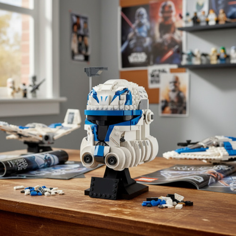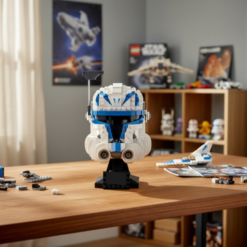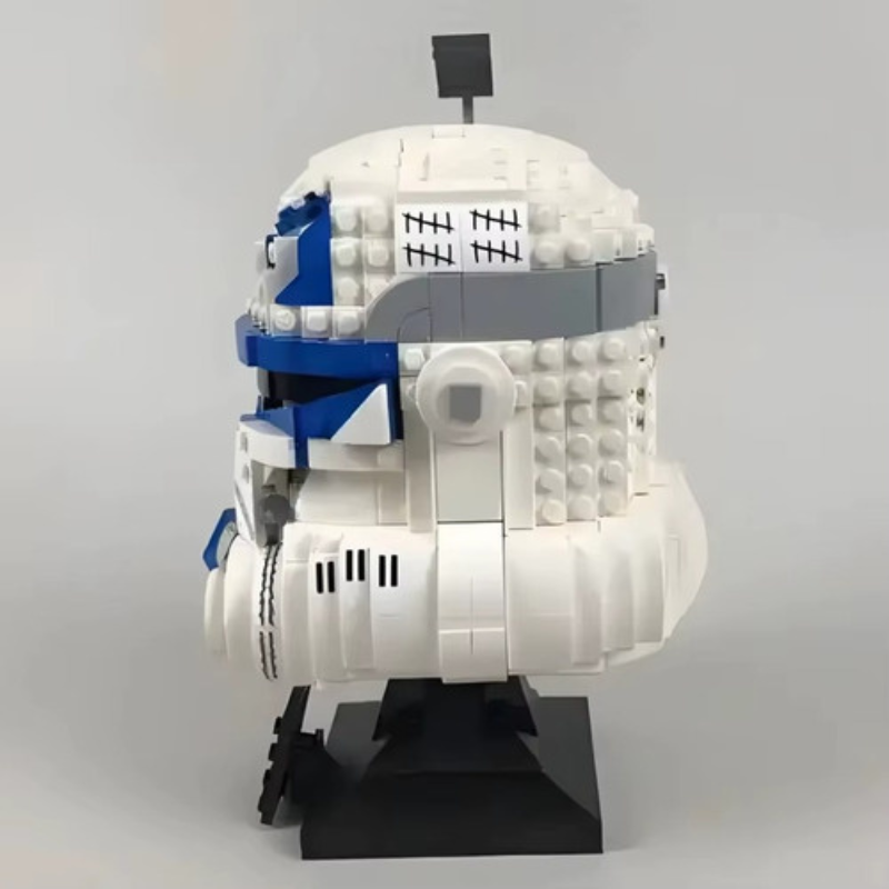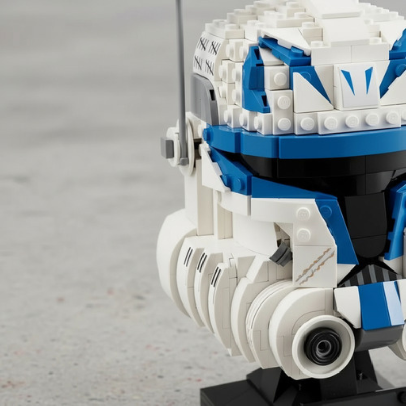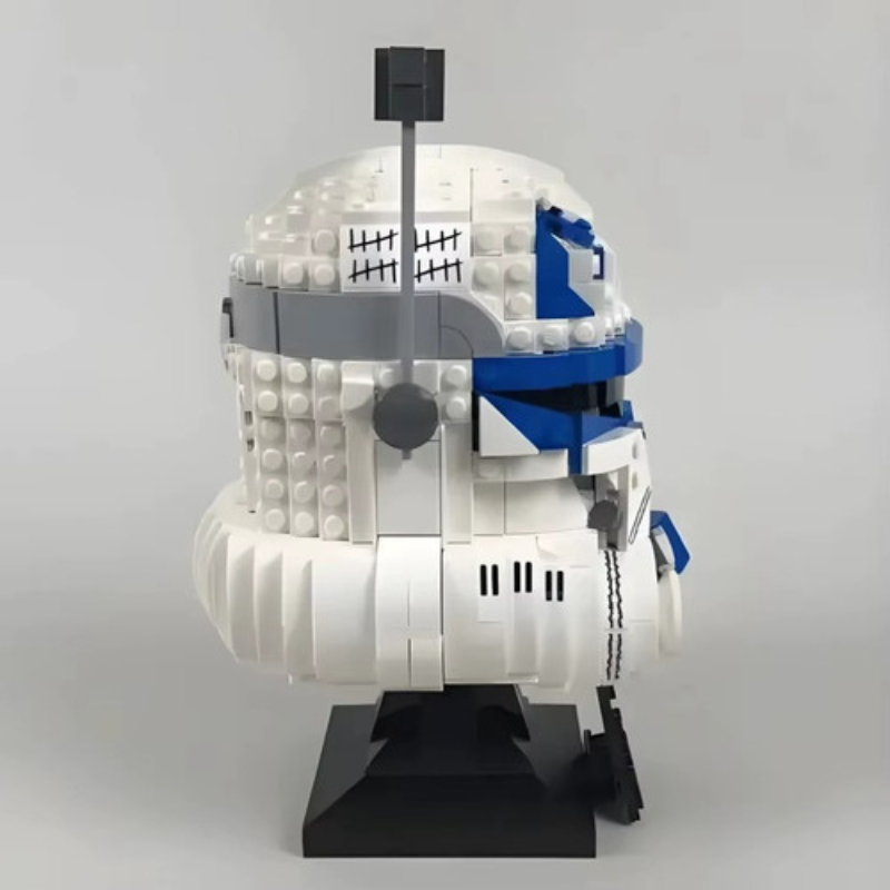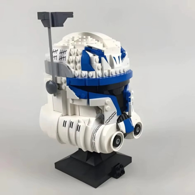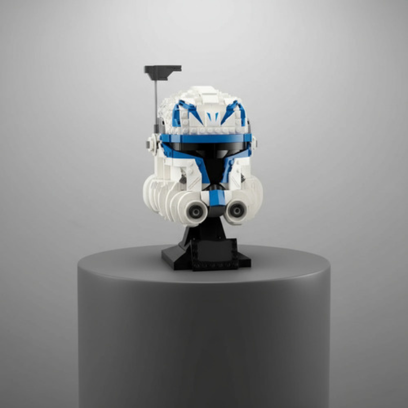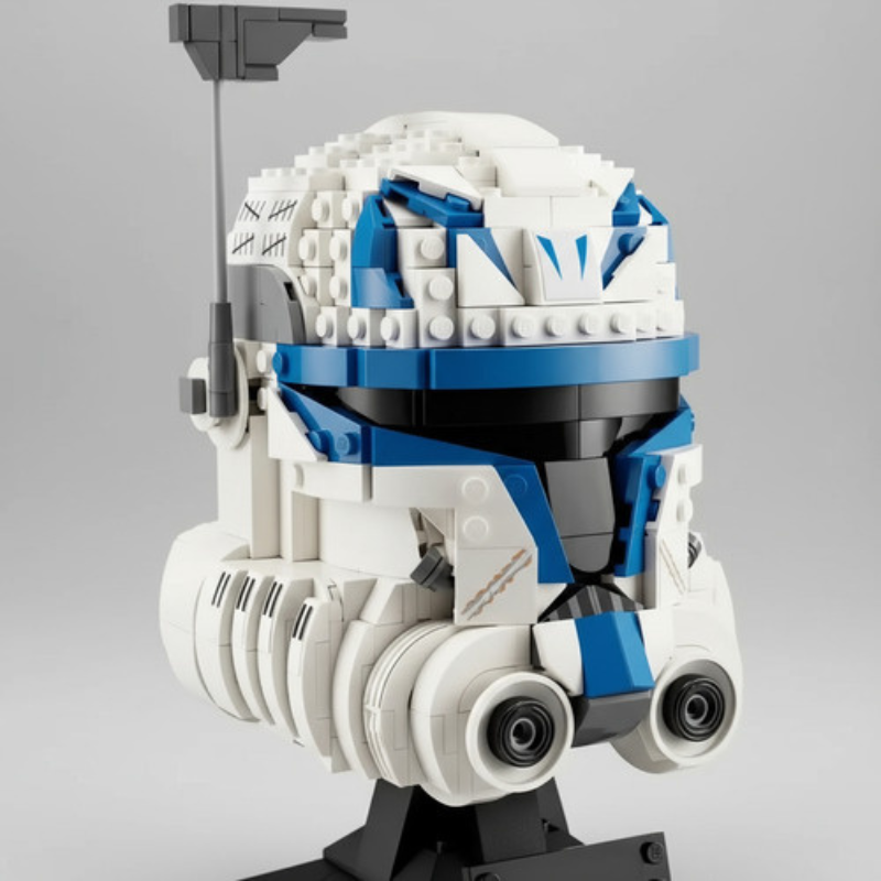 O capacete do Capitão Rex em blocos de montar é uma peça indispensável para quem é fã de Star Wars: The Clone Wars e da 501ª Legião. Em versão display, ele traz o visual icônico do comandante clone com detalhes em azul e branco, perfeito para estante, home office ou quarto gamer.