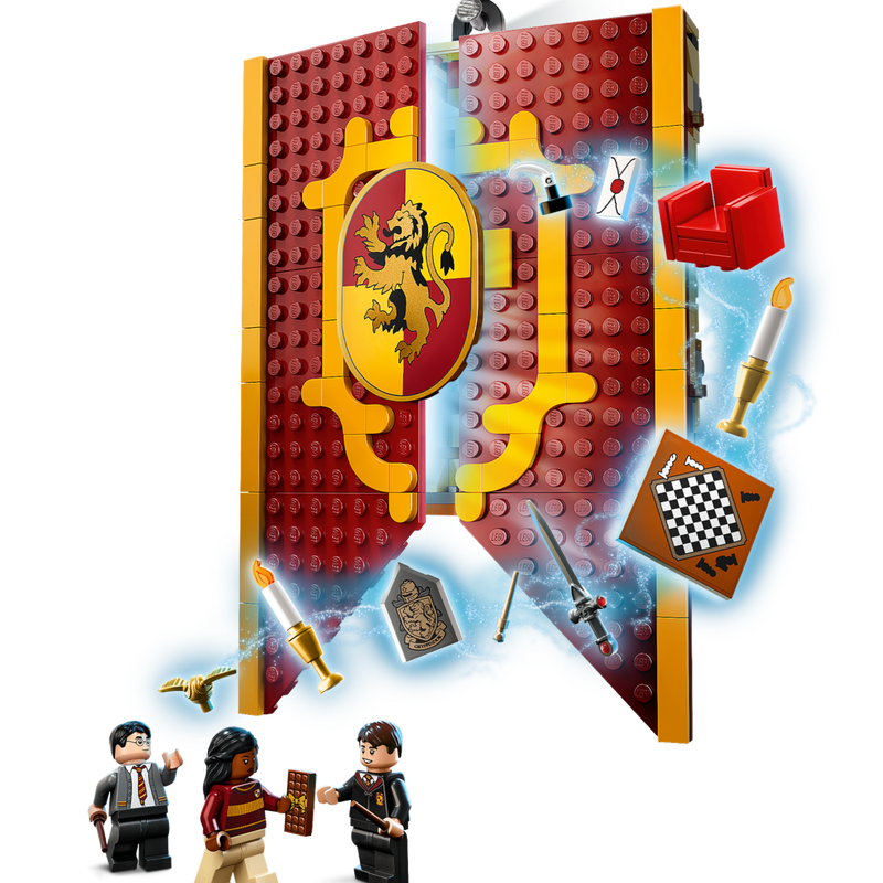 Este conjunto de 4 casas de Hogwarts em blocos de montar transforma as bandeiras das casas em modelos colecionáveis e decorativos. Inspirado nos banners oficiais de Hogwarts, cada casa (Grifinória, Sonserina, Corvinal e Lufa-Lufa) ganha sua própria bandeira em blocos, com brasão, cores características e interior temático ao abrir o modelo.