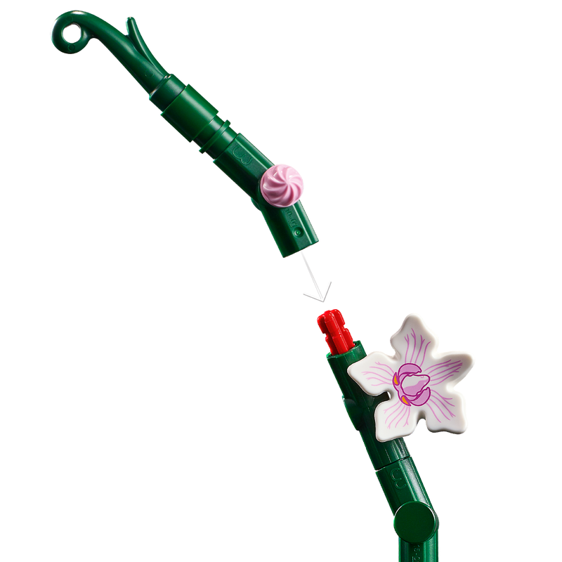 O arranjo de Orquídeas da linha Flores Botanicals em blocos de montar é perfeito para quem ama decoração e quer algo diferente dos vasos tradicionais, ele cria um vaso elegante com hastes, flores articuladas e folhagem detalhada, que combina com sala, quarto, home office ou até recepção de clientes.
