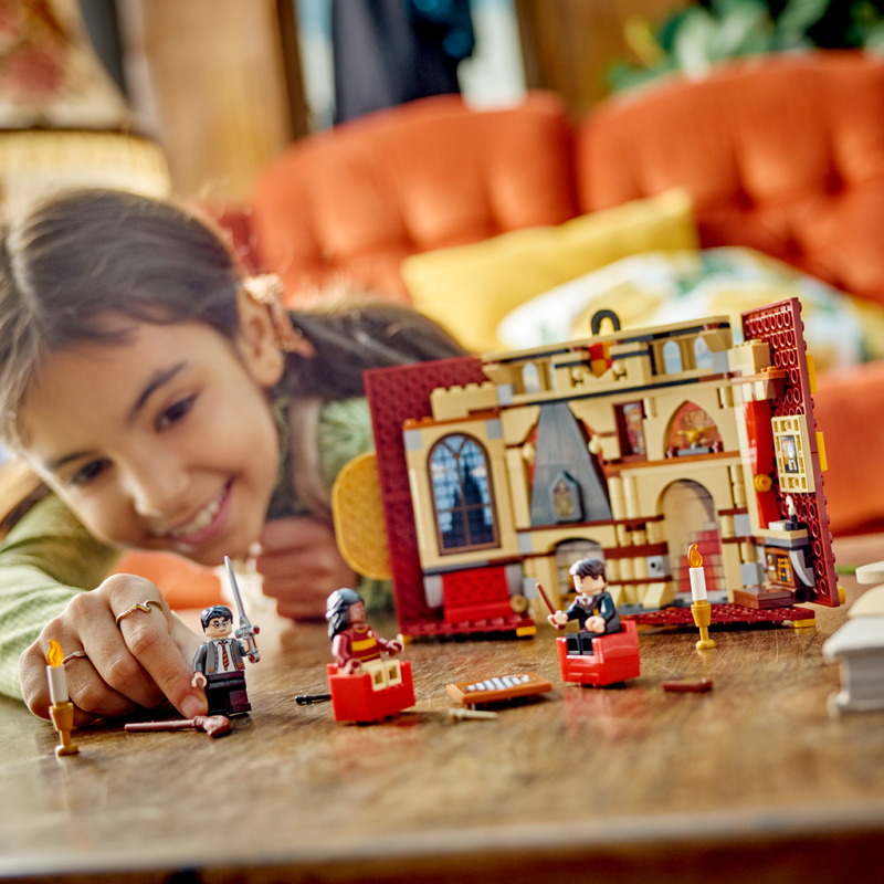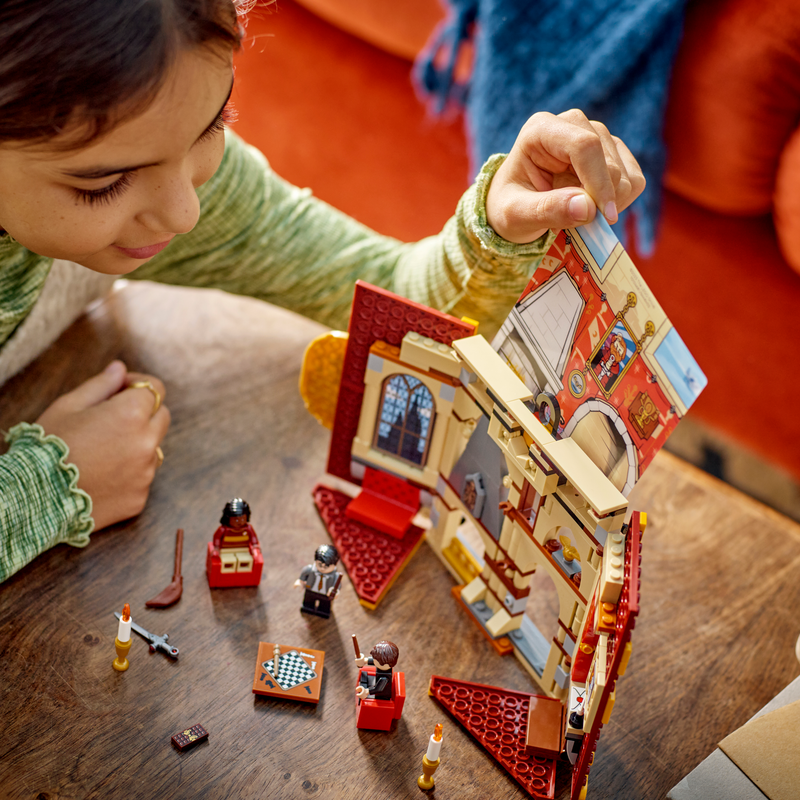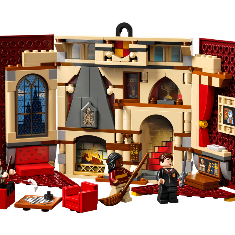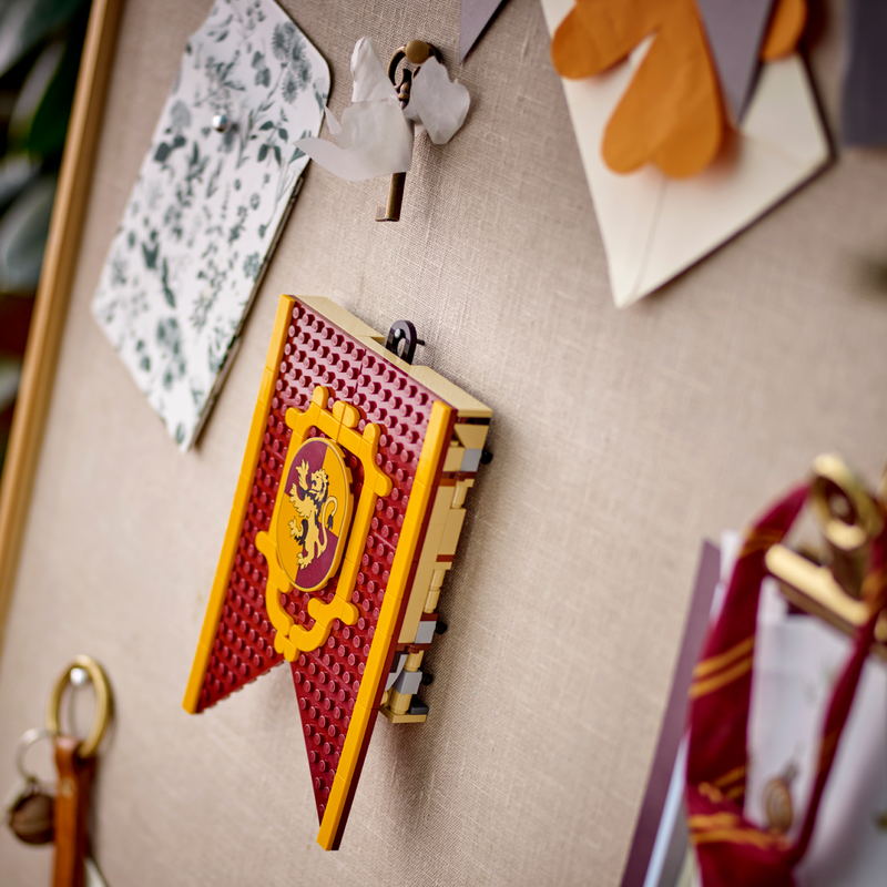 Bandeira da Casa Grifinória em blocos de montar, inspirada em Hogwarts
