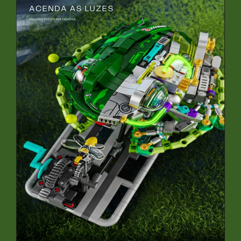 O Sapo Mecânico foi feito para quem gosta de montagens diferentes, cheias de personalidade e presença na prateleira. Com 898 peças, este modelo traz o visual de um sapo em versão “robótica”, com formas angulares e aparência mecânica, criando um contraste interessante entre o tema animal e o estilo tecnológico.