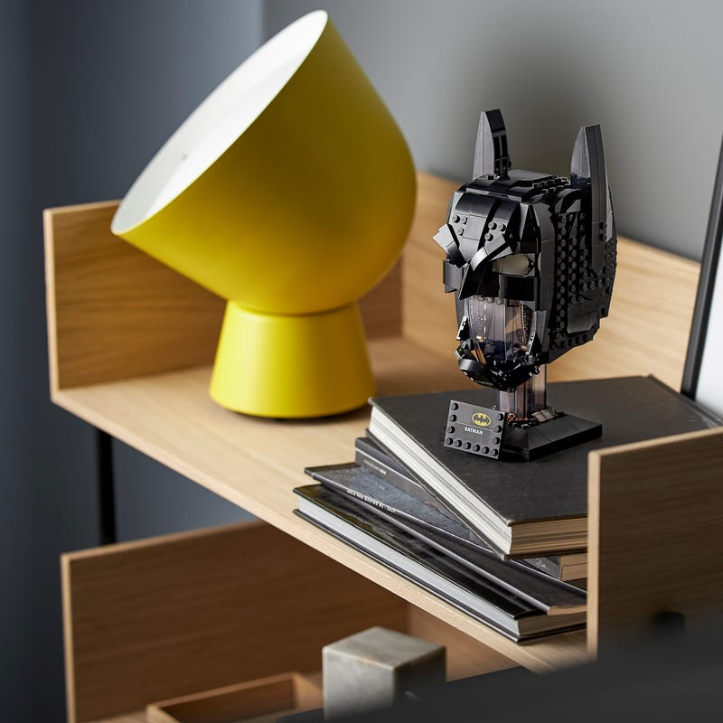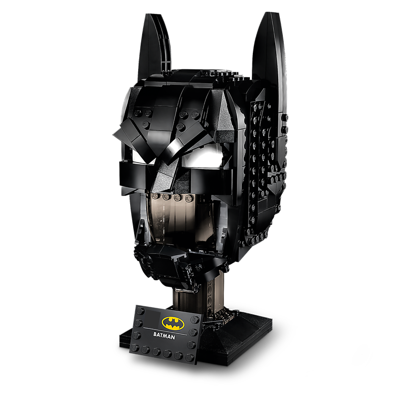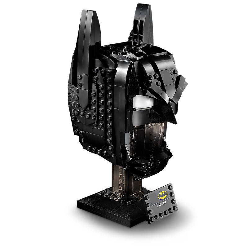 • Design fiel ao capuz clássico do Batman, com estrutura minimalista e detalhes sombreados