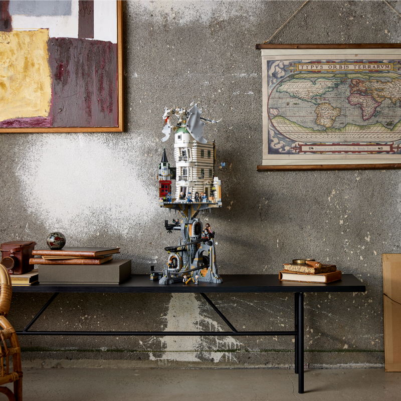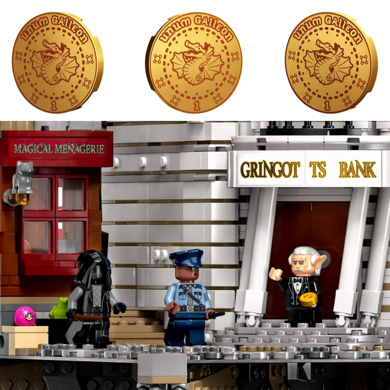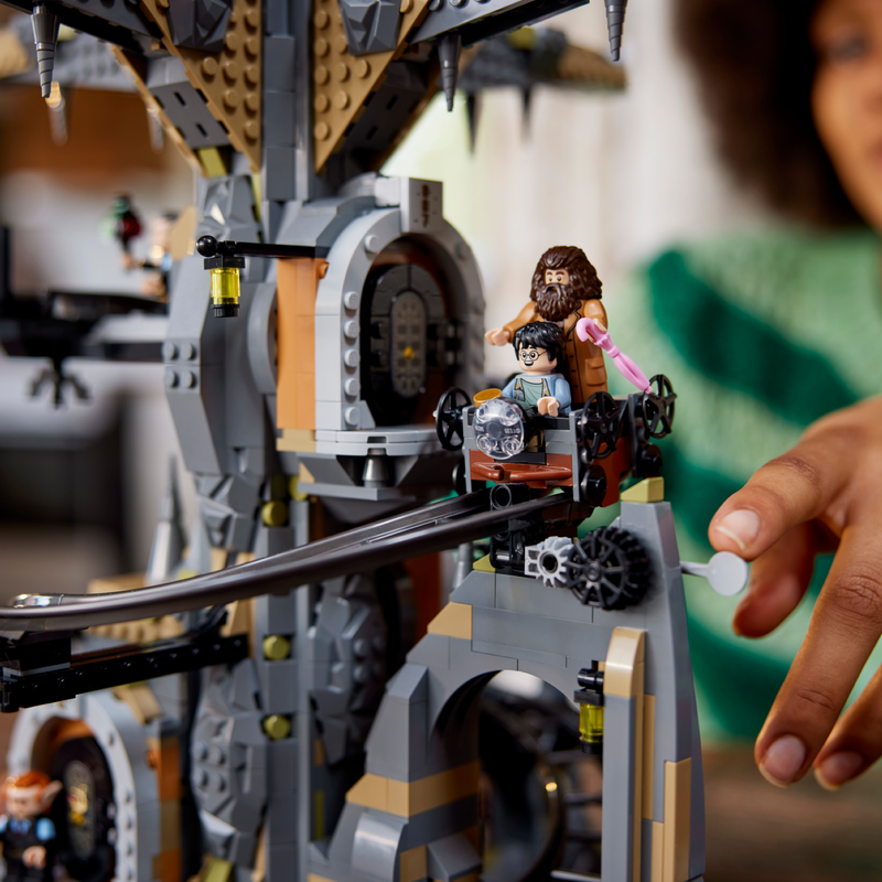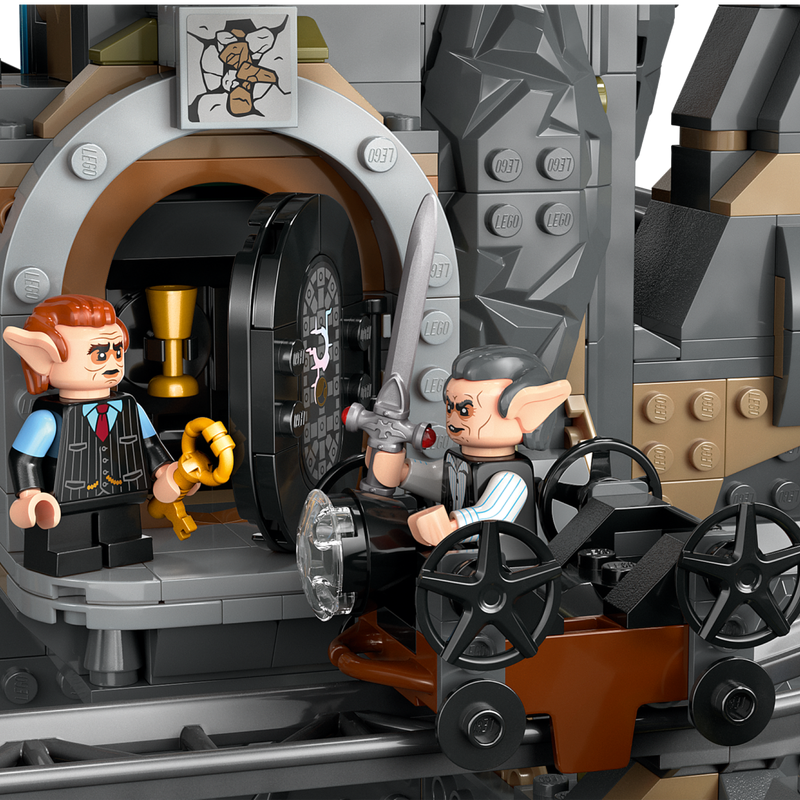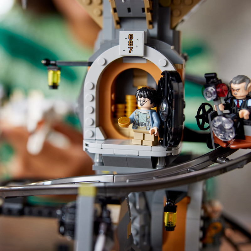 Este conjunto do Gringotts Wizarding Bank – Collectors’ Edition foi desenvolvido para colecionadores que buscam uma experiência de montagem grandiosa, rica em detalhes e com forte presença visual. Com 4.803 peças, o modelo recria o lendário banco dos bruxos com sua fachada imponente, o interior do saguão, os cofres subterrâneos e o trilho do carrinho que desce até as profundezas. O resultado final não é apenas um modelo — é uma peça de exibição monumental, digna de ocupar posição central em qualquer coleção Harry Potter.