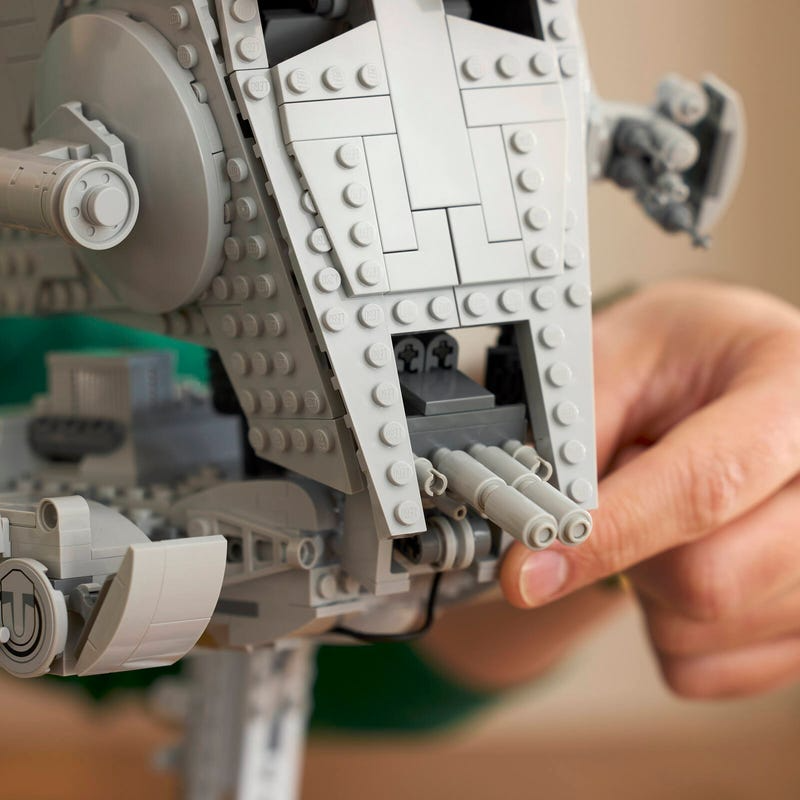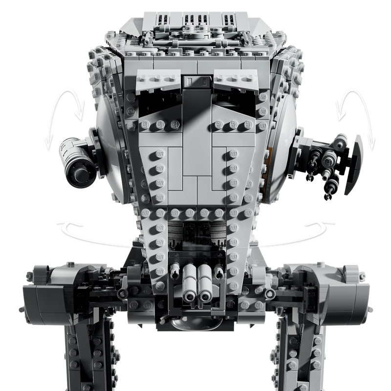 Design fiel ao AT-ST Walker, com cockpit detalhado, canhões frontais e pernas articuladas