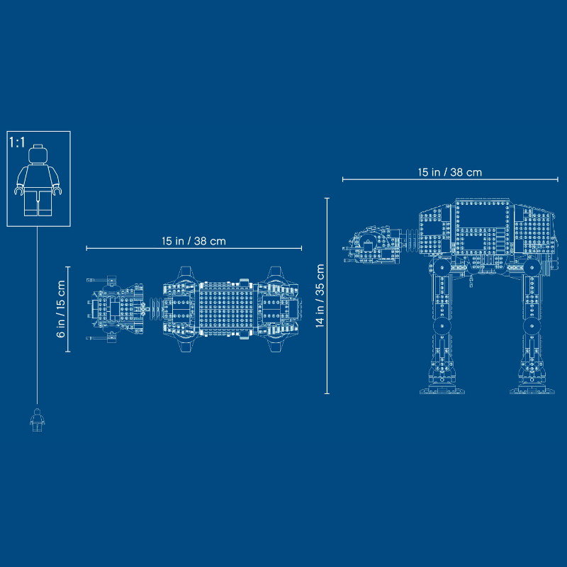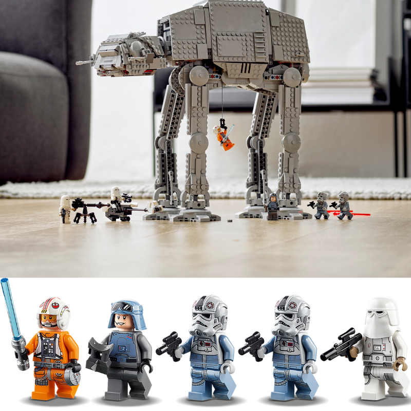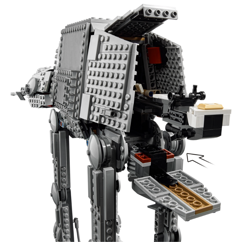 Design fiel ao AT-AT Walker, com cockpit detalhado, pernas articuladas e proporções imponentes