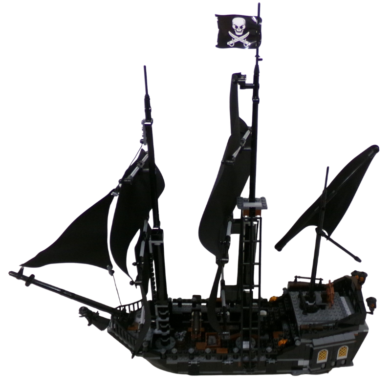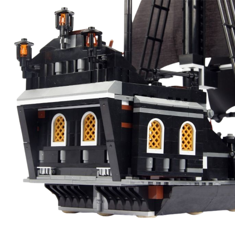Design inspirado no clássico Pérola Negra, com casco detalhado, mastros, velas e convés completo