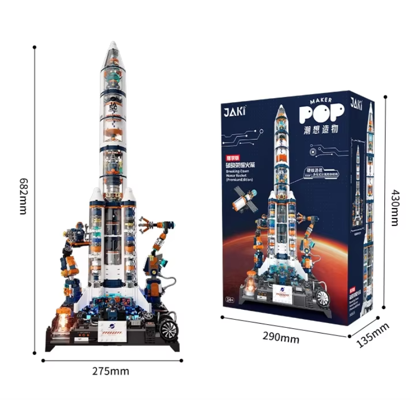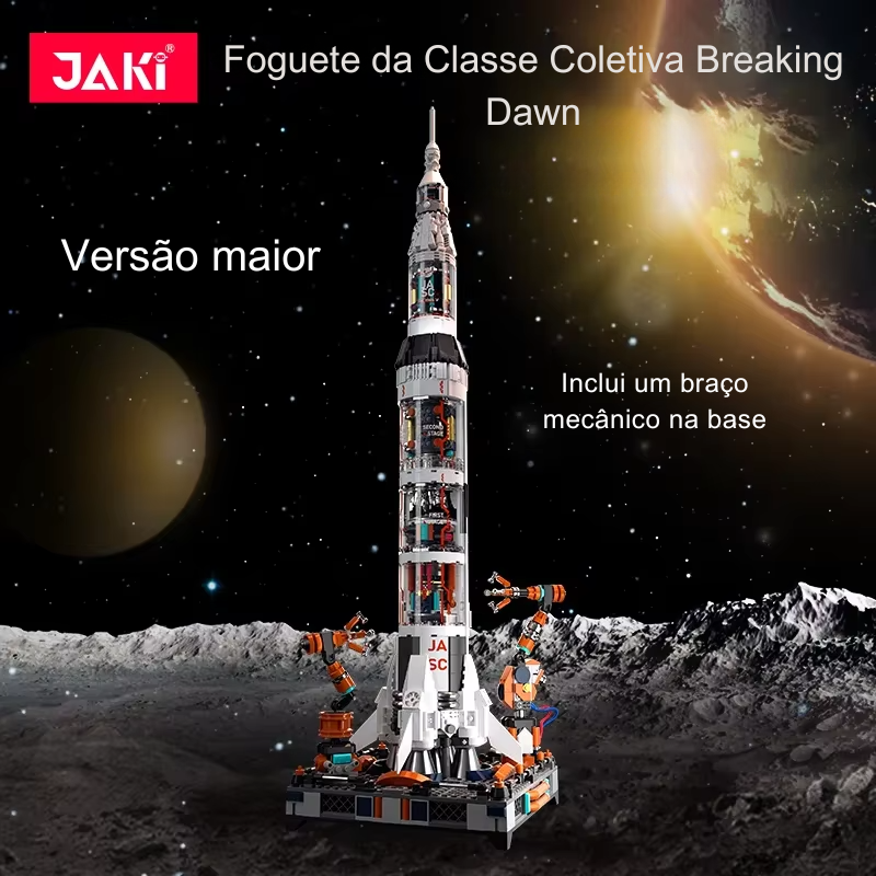 O Breaking Dawn Honor Rocket, da marca JAKI, é um modelo criado para colecionadores que se impressionam com engenharia, escala e impacto visual. Inspirado nos grandes foguetes da era espacial, este kit entrega uma construção imponente, técnica e extremamente satisfatória. Com 1.349 peças, o processo de montagem conduz a um resultado final que domina qualquer ambiente, transmitindo inovação, exploração e grandiosidade. Não é apenas um modelo — é uma peça de exibição que representa o espírito da corrida espacial.