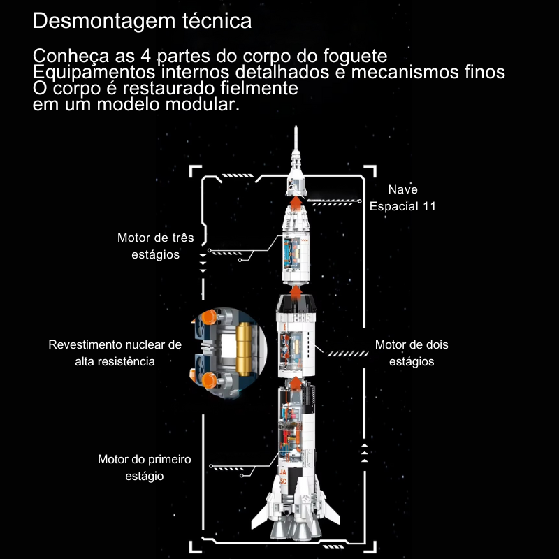 Acabamento visual premium, ideal para colecionadores de espaço, ciência e engenharia