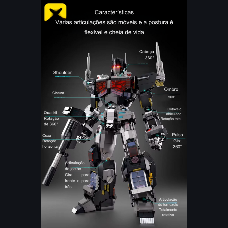O Nemesis Knight é um modelo criado para quem busca imponência, presença e liberdade total de pose. Com 2.045 peças, este robô articulado entrega uma construção robusta e altamente detalhada, resultando em uma figura de exibição poderosa, com estética futurista e postura dominante. Cada etapa da montagem revela soluções de engenharia pensadas para permitir movimento, estabilidade e impacto visual. O resultado final não é apenas um robô montado — é uma peça de destaque absoluto em qualquer coleção sci-fi ou mecha.