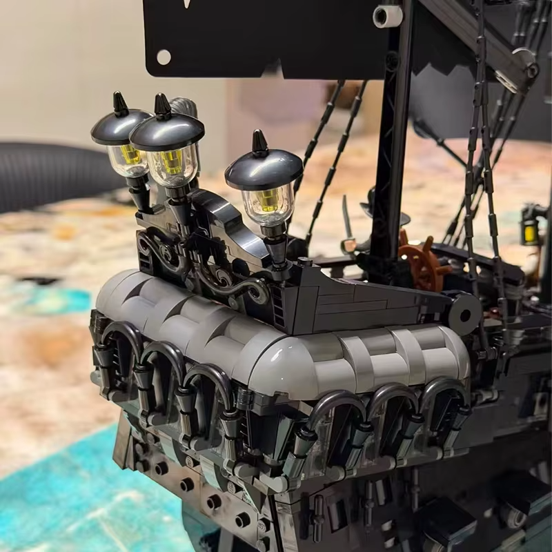 • Design inspirado no clássico Pérola Negra, com casco detalhado, mastros, velas e convés completo