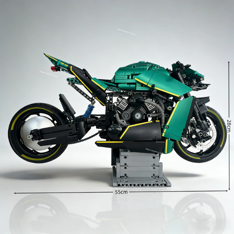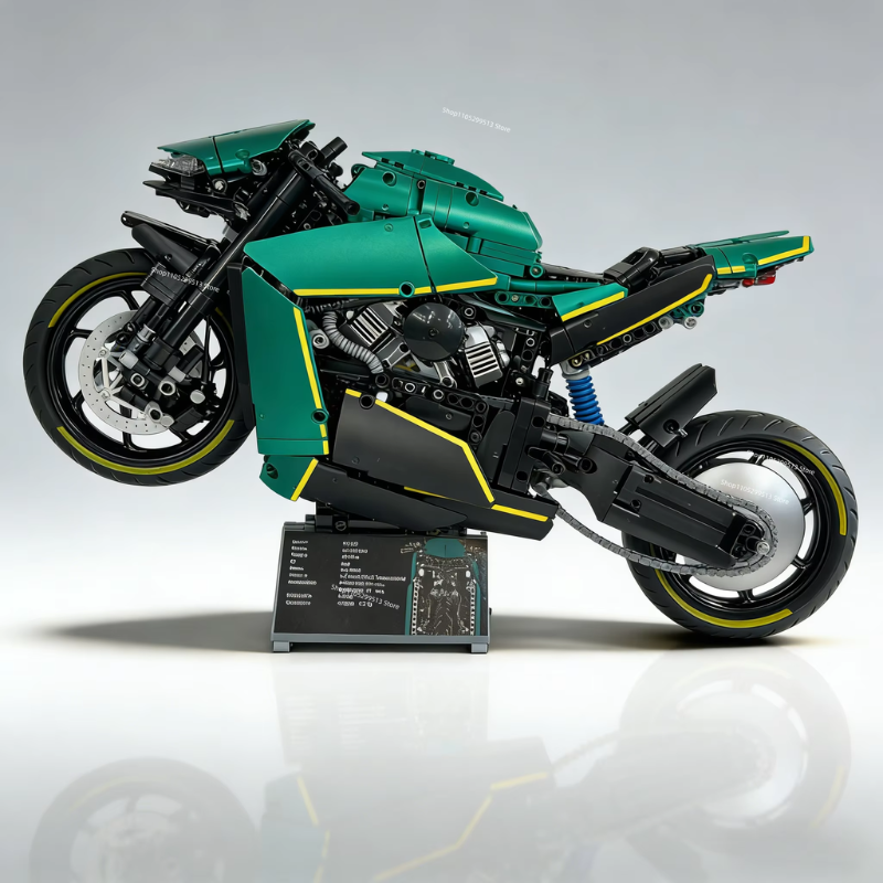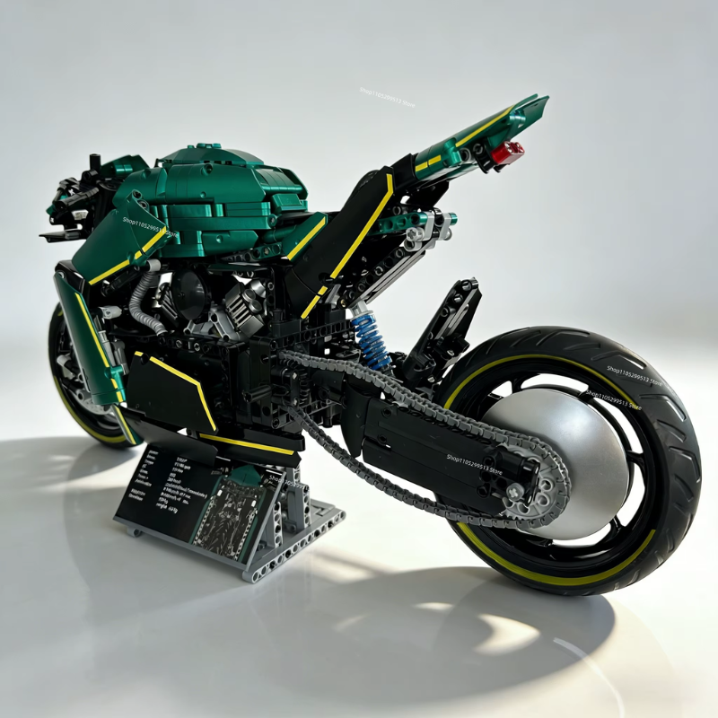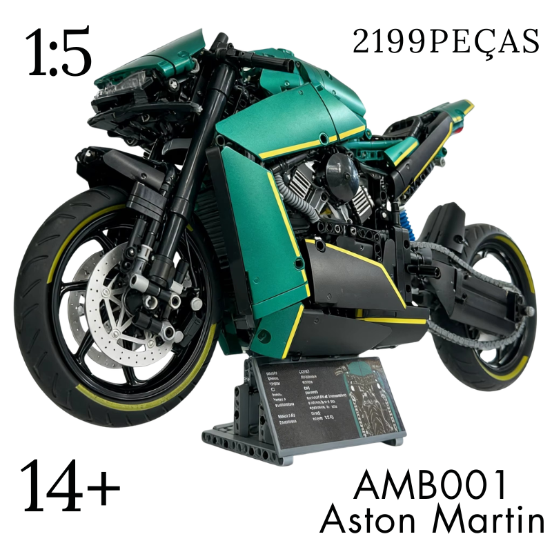 Inspirada na lendária Aston Martin AMB 001, esta motocicleta em blocos de montar transcende o conceito tradicional de hobby.
